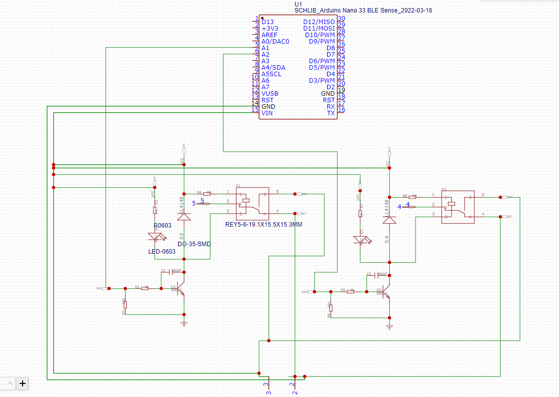 The glove utilizes an Arduino Nano BLE in order to connect to a mobile app, and control the motor. Based on available datasheets, an Arduino Nano is not capable of providing sufficient power for our linear actuator. To overcome this, signals are sent to a 2-channel relay, which is connected to a power supply and the motor.